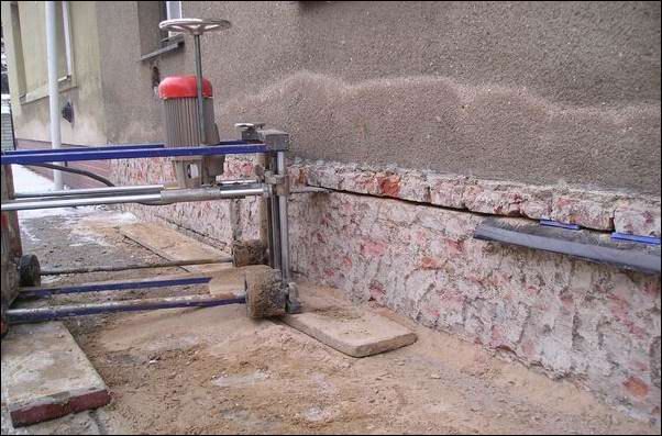 Technologický postup sanace, izolace zdiva řetězovou pilou, podřezávání zdiva